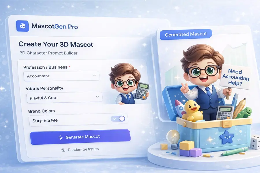 Generate mascot-style prompt ideas tailored to your business and industry. Great for creating friendly, recognizable branding visuals.
